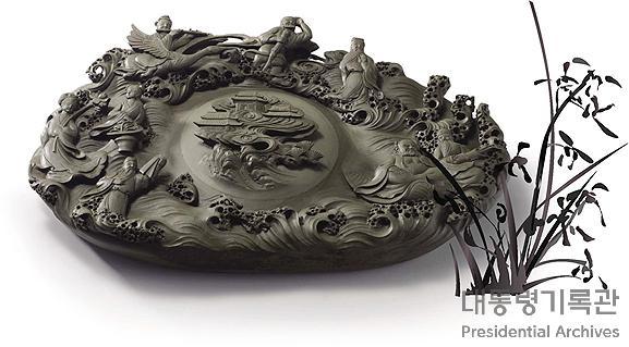 세밀한 선조와 선와상 화문이 채도문식의 주제로서 흐르는 물의 묘사와 찬미의 표현이다.