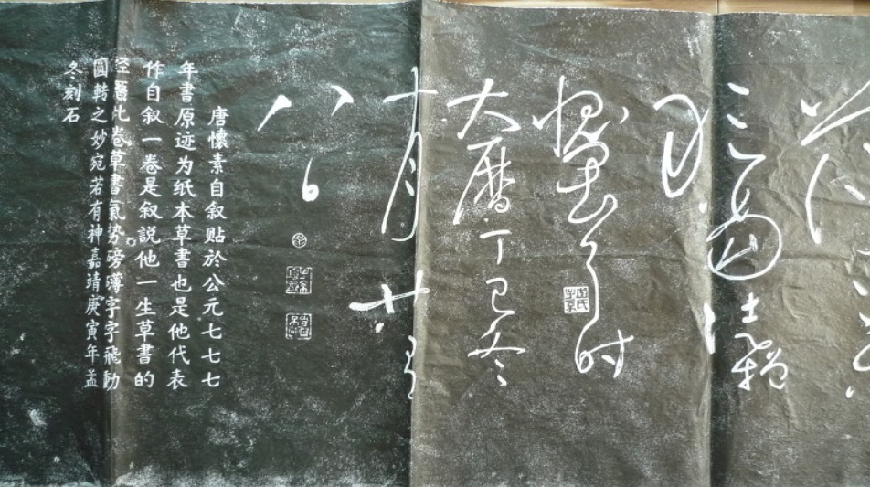 懷素1)는 長沙2)에서 살았고, 어려서 부처를 섬겼으며, 讀經과 參禪하는 여가에 매우 글쓰기를 좋아했다. 그러나 멀리 전인들의 기이한 자취를 보지 못하고, 볼 수 있는 것은 매우 淺近함을 한탄하여, 마침내 책 상자를 메고 錫杖3)을 집고, 서쪽의 上國(洛陽)을 유람하여, 그 당시의 明公을 만나보고, 그 일을 錯綜4)하게 되었으니, 남아있는 책과 끊겨진 편지들을 때때로 보고, 마음을 豁然하게 하여 전혀 막힌 것이 없게 되었다. 魚箋5)과 흰 비단에 많은 얼룩진 점들을 士大夫들은 괴이하게 여기지 않았다.