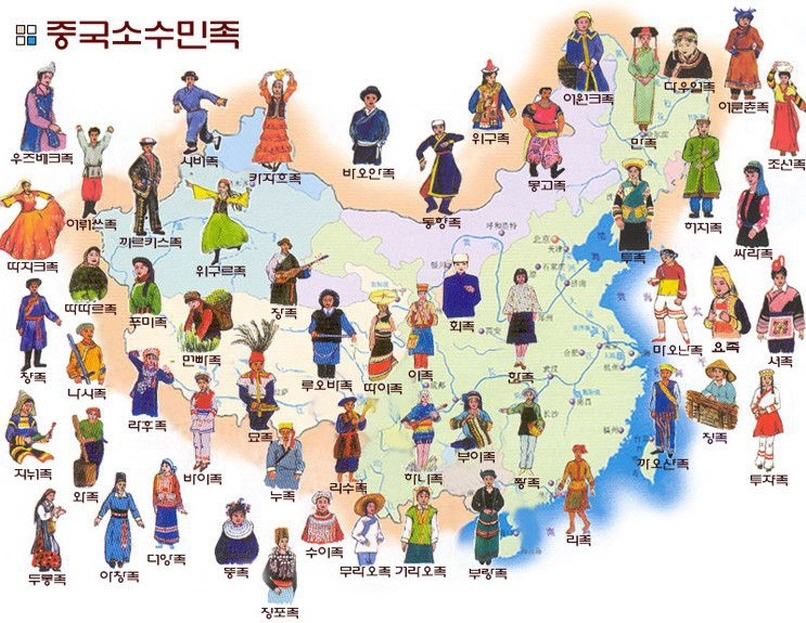 56개 민족으로 분류되지 않은 민족. 중국 소수민족의 숫자는 공식적으로는 56개 민족이지만 실제 민족 수는 공식적인 분류보다 많다. 중화인민공화국은 몇몇 민족을 통합시켜놓았고 아직도 민족으로 분류되지 않은 소위 미식별민족이 73만 명이나 남아있다.