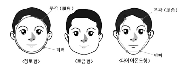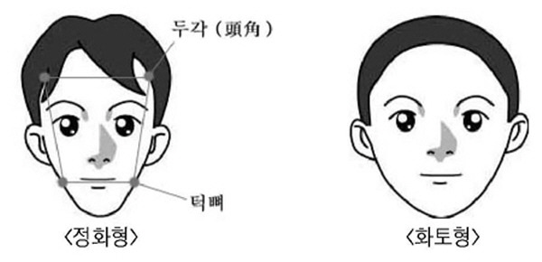 수형 체질은 삼각형을 띤 얼굴과 긴 삼각형을 띠면서 턱이 넓은 얼굴로 구분된다.