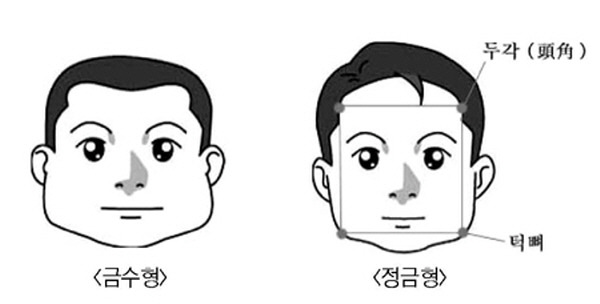 정금형(正金型)은 얼굴이 정사각형을 띠는데 이런 유형의 사람은 폐·대장은 크고 실하지만 간·담은 작고 허하게 태어났다.