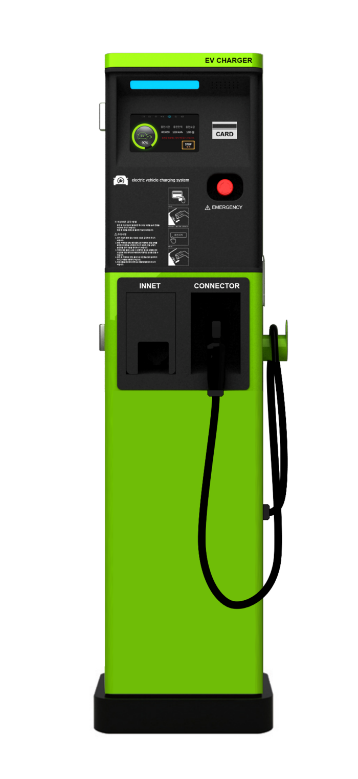 충전 속도가 빠른 급속 충전기와 속도가 느린 완속 충전기가 있습니다.