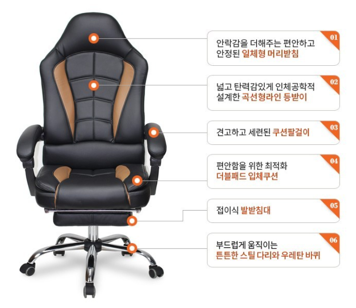 흔히 틸팅이라고 부르는 등받이 각도 조절 기능과 팔걸이 높낮이 조절 기능, 목/ 허리 쿠션의 유무, 제품 하단부의 오발과 바퀴 재질 등을 자세히 살펴보도록 합니다. 오발과 바퀴 재질은 내구성이 좋은 강철로 된 제품이 좋으며 강화 플라스틱 제품도 추천합니다.