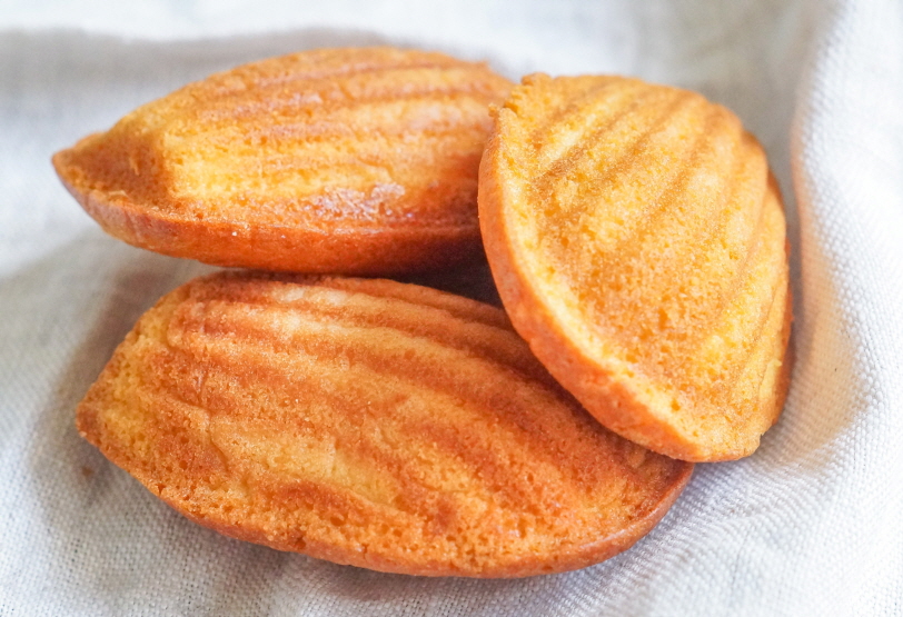 마들렌은 프랑스 로렌지방의 코메르시 라는 곳의 지방과자로 폭신한 식감과 특유의 조개 모양 그리고 볼록한 배꼽이 특징입니다.