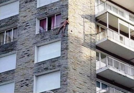 ▲ 무슨 죄목으로 그케 목숨걸고 매달려있는겨? 화재가 난건 아니고...말못할 사연은 분명할거구만^^ 바람한번 피우다 식겁한 저 남자의 심장은 지금........