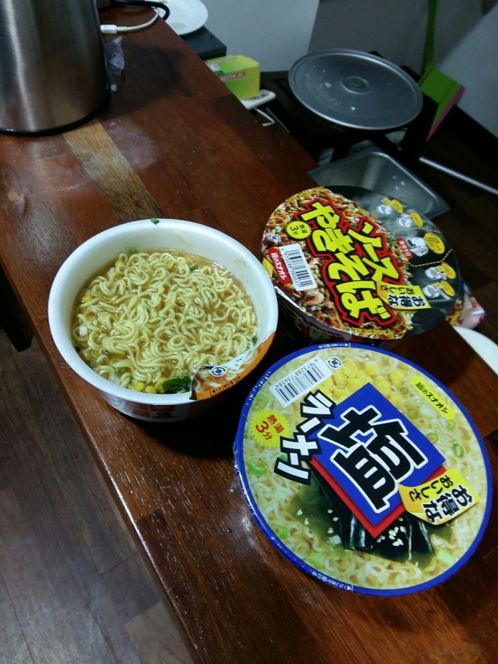 마지막 일본 라면 (혹은 야키소바)와 일본식 주먹밥 같이 먹고