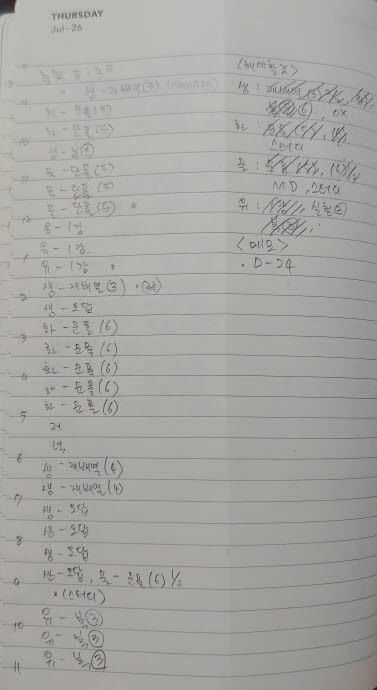 -시험 한달 전부터 기상 시간을 더 빠르게 맞췄어요. 보통 7시 반에 일어났지만 이때부터는 7시에 일어나 컨디션을 맞추려고 노력했어요.