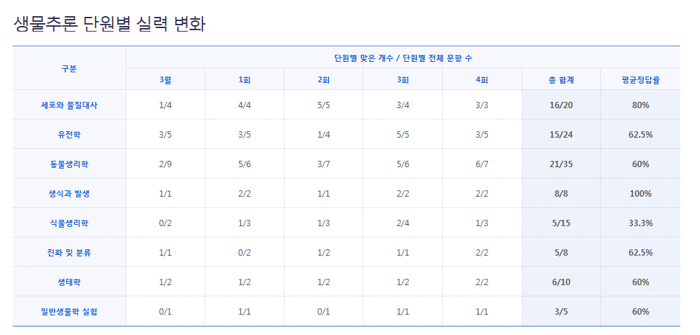 생물의 경우 같은 내용을 최소 10번이상 복습했어요.