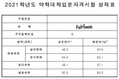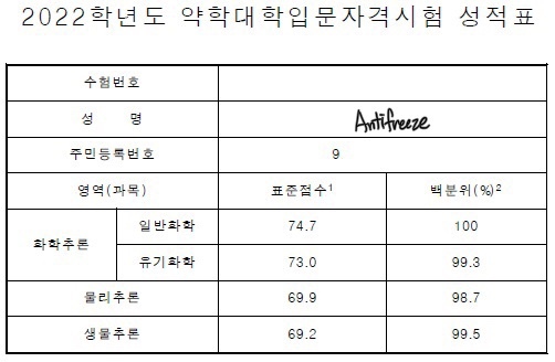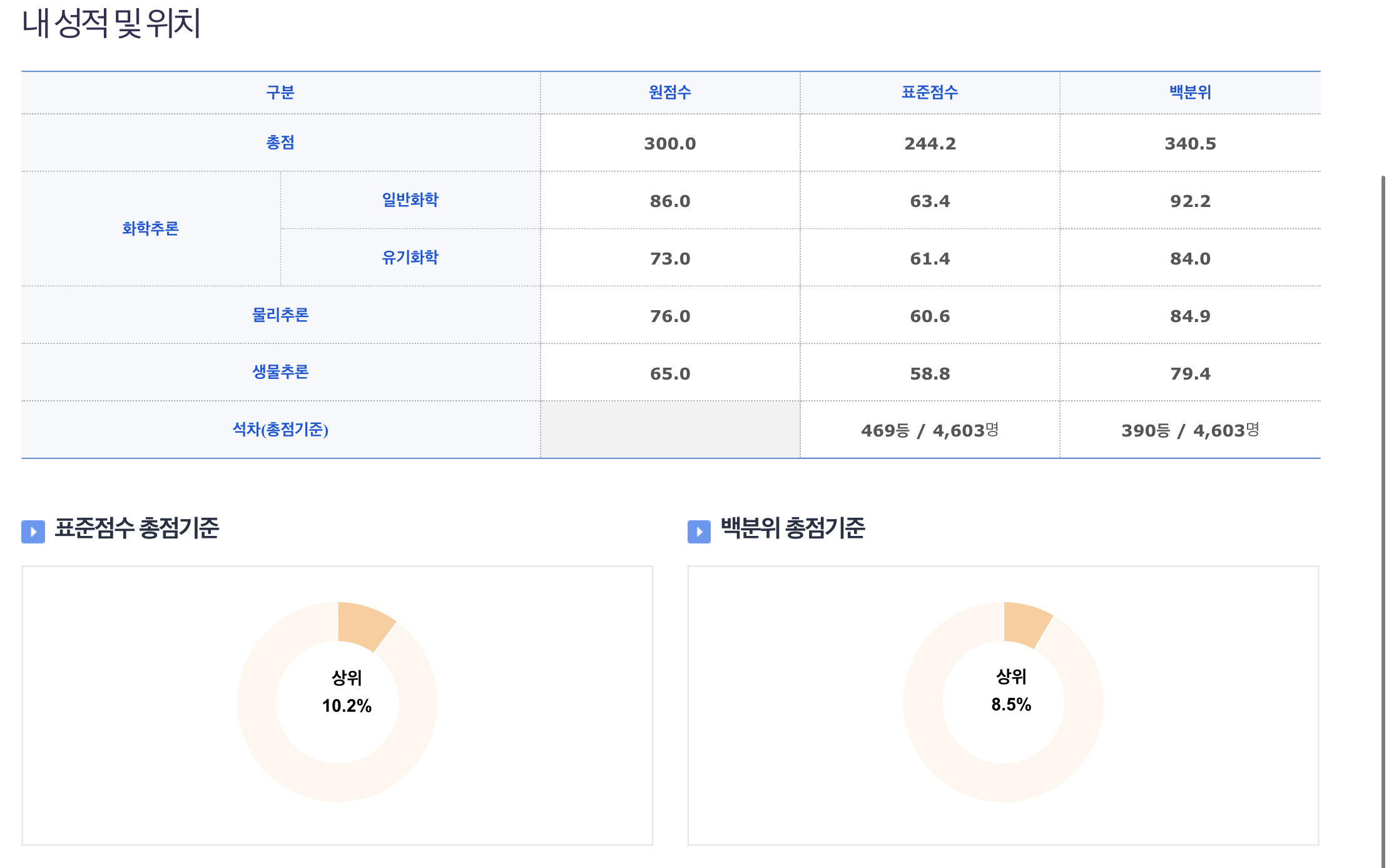 수능 물리1, 화학1, 생명과학1 응시(재수 경험O)
