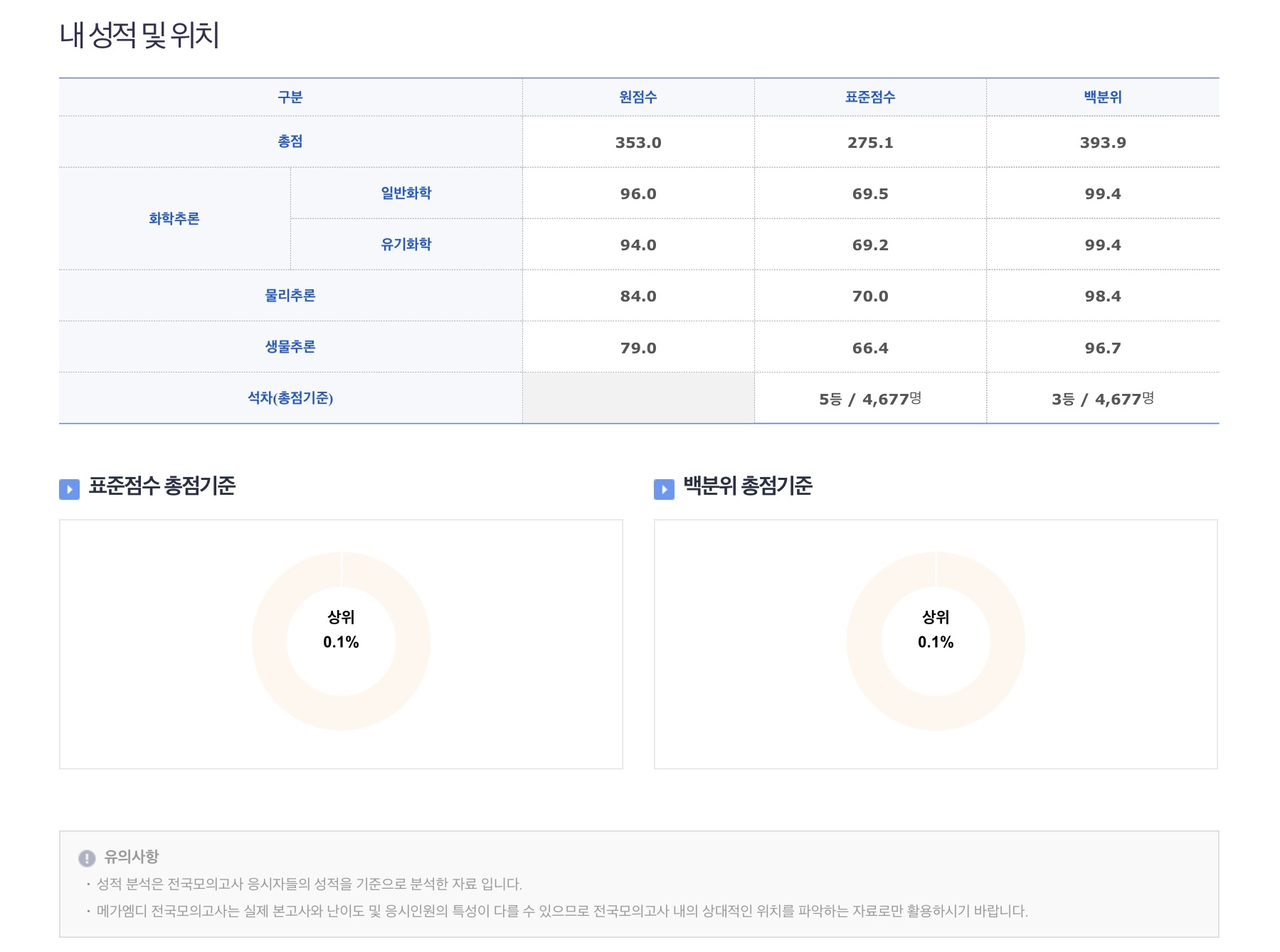 11회 PEET는 이론강의만 수강한 상태로 본 것이라 크게 의미는 두지 않았습니다. 모의고사는 메가엠디 현장모의고사 1, 2회 응시하였고 3회는 문제지만 따로 받아 풀이해서 따로 성적은 없습니다.