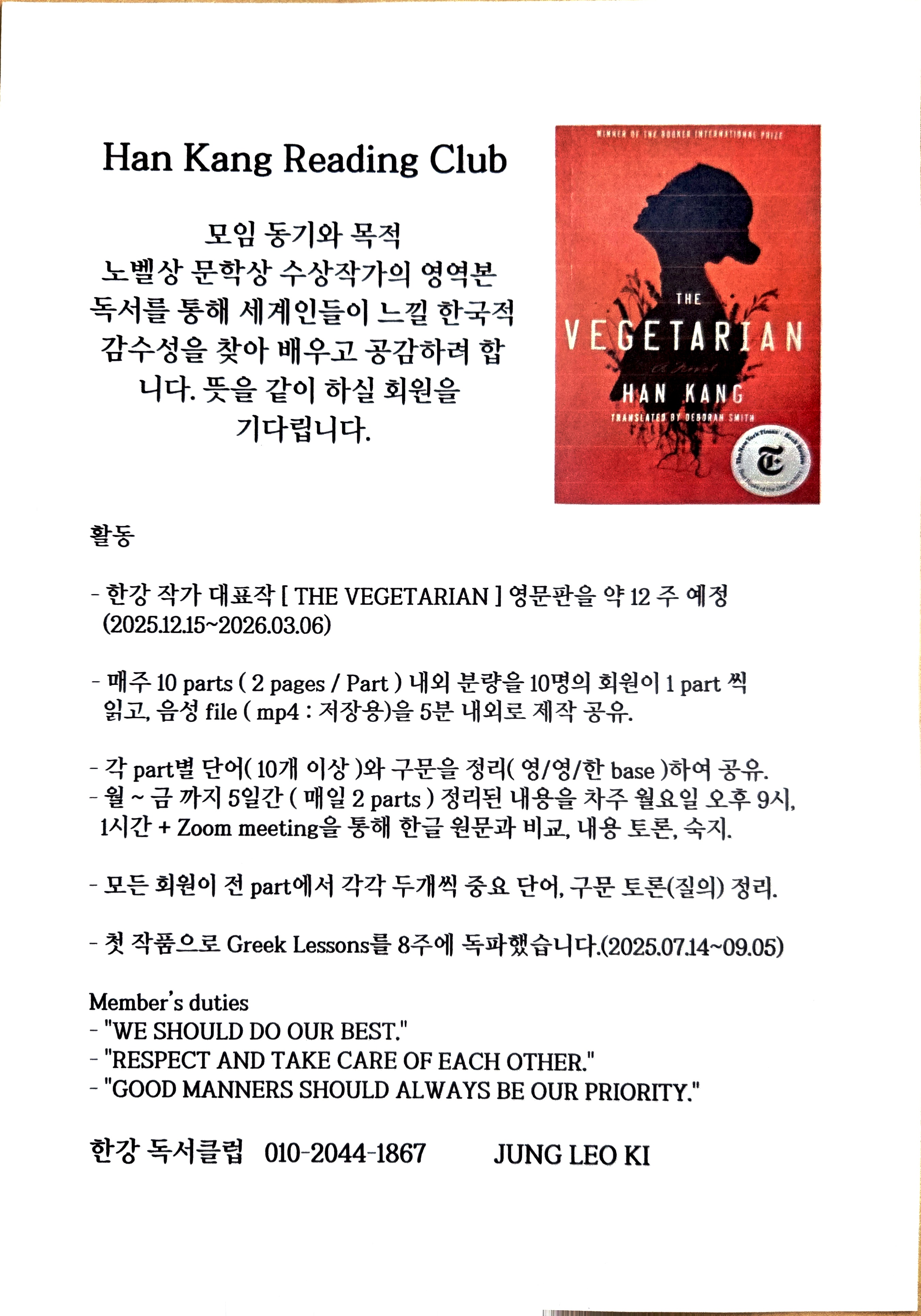 혹시 여력이 있거나 영어 원서 읽기에 관심 있는 분들께서는 적극적으로 참여해보시기 바랍니다. 여름 방학 중에는 졸업하신 분들도 일부 참여했었다고 합니다.