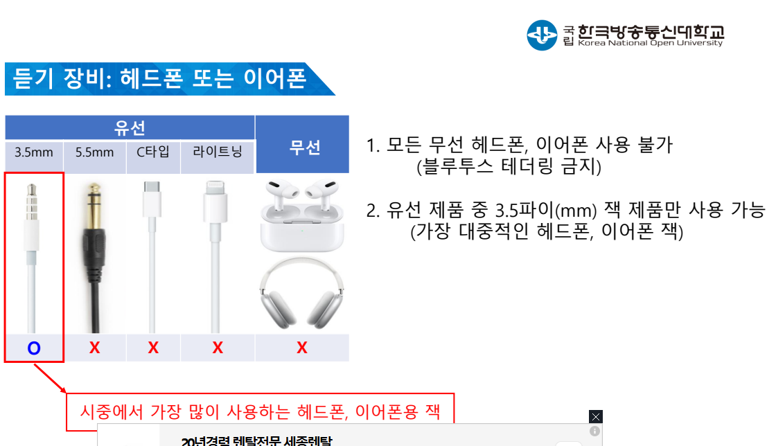 아래 사진을 참고하여 시험장에서 사용 가능한 이어폰을 확인하기 바랍니다.