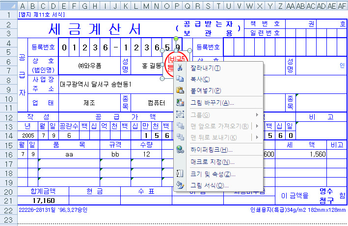 인터넷에서 엑셀 서식을 받고 작성을 하고 제 도장을 첨부 하려고 하는데.... 위치에 놓고 하니 맨 뒤로 보내기가 안 되네요.