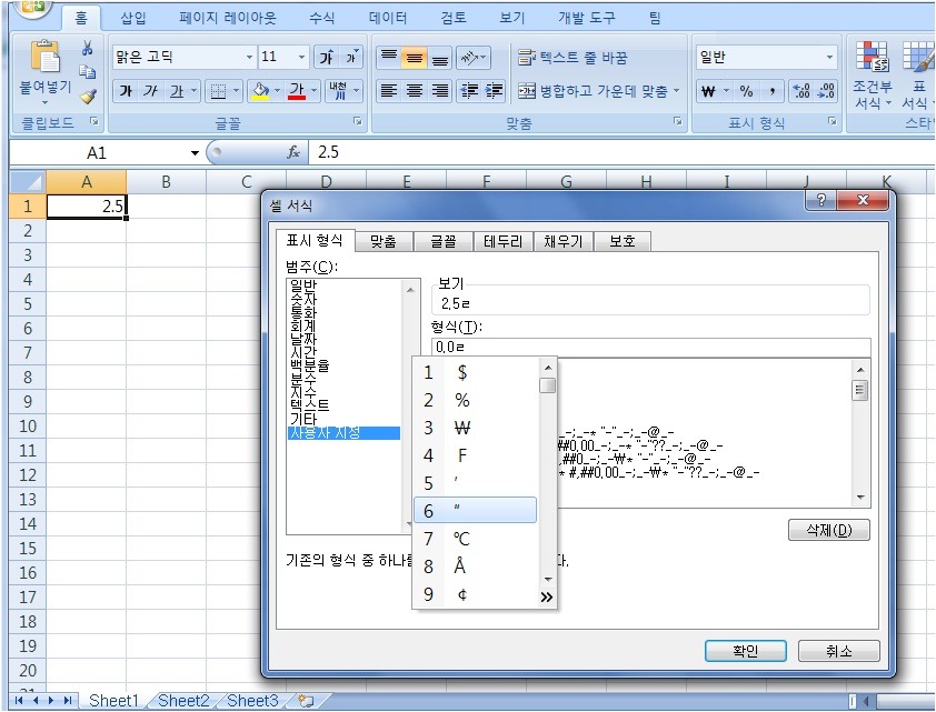 가끔가다가 숫자를 셀서식에서 인치(") 표시를 하려고 하는데 에러가 난다고 하시는 분들이 계십니다.
