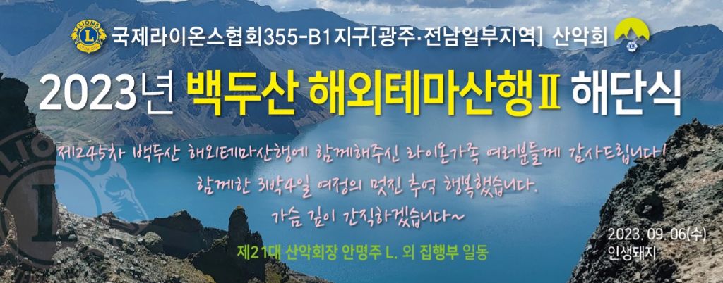 아름다운 라이온! 함께하는 산악회!!라는 주제로