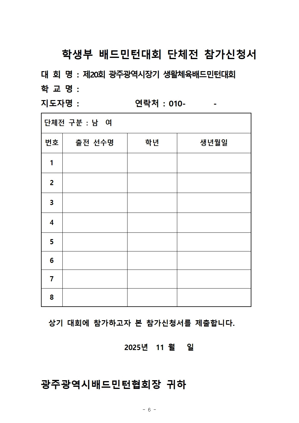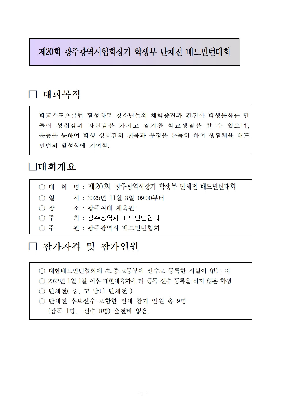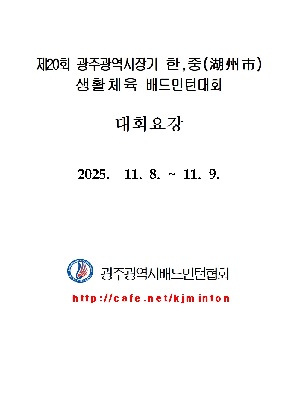 2025 제20회 광주광역시장기 한,중 생활체육배드민턴대회(임시본) 작성자신준승/광산구/송정|작성시간25.10.11|조회수1,316 목록 댓글 0 글자크기 작게가 글자크기 크게가 다음검색 현재 게시글 추가 기능 열기 북마크 신고 센터로 신고 댓글 댓글 0 댓글쓰기 답글쓰기 댓글 리스트