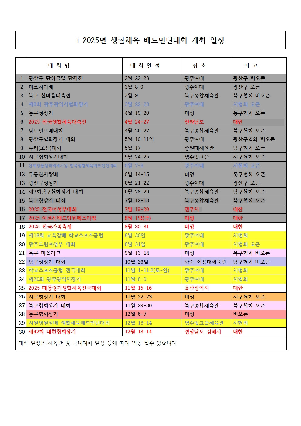 2025대회일정 수정(10월 8-9 서구대회 취소) 작성자유귀숙 /시협회 총무/북구/전대모아|작성시간25.08.30|조회수880 목록 댓글 0 글자크기 작게가 글자크기 크게가 다음검색 현재 게시글 추가 기능 열기 북마크 신고 센터로 신고 댓글 댓글 0 댓글쓰기 답글쓰기 댓글 리스트