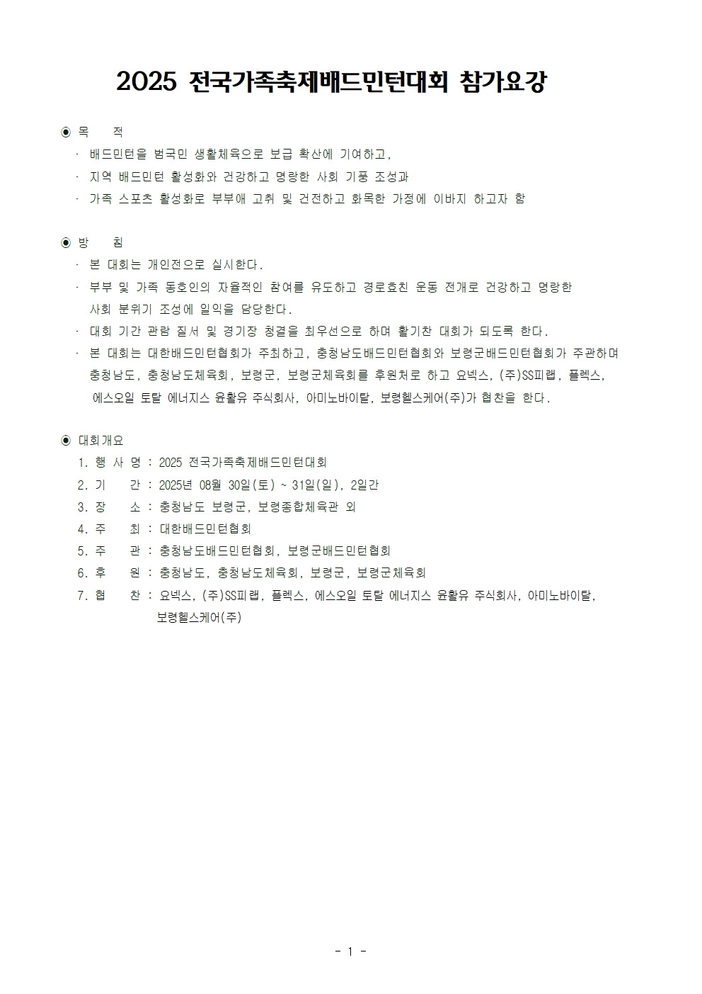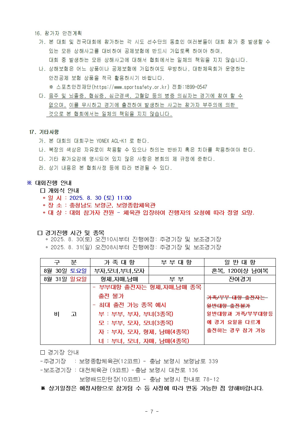 이번 전국 가족 축제 배드민턴대회는 저희 시대회와 겹치지만 저희가 일정을 먼저 잡고