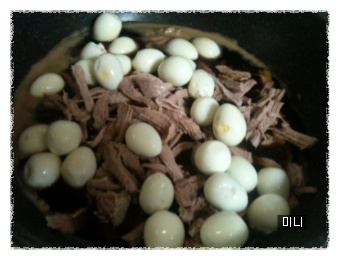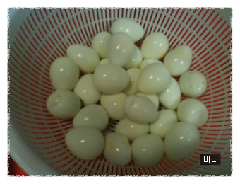 욜케 메추리알 삶아 옷을 살짝 벗겨 샤워시키고~