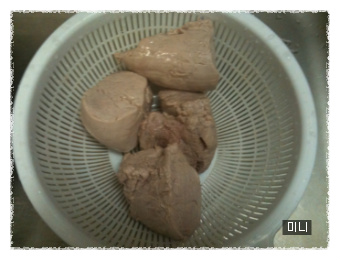다 익은 고기 찬물에 확~샤워시켜 한쪽 구석에 잠시 방치~