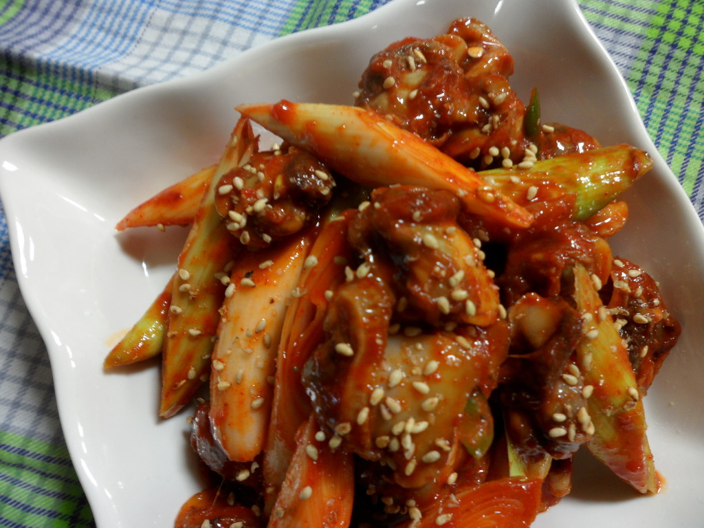 꼬막이 얼마나 살이 쪘는지.....풋마늘에 매실청과 고추장만 넣고 무쳐도 맛있네요.