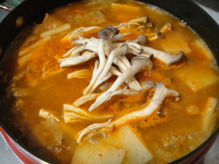 참타리버섯을 넣어줍니다.... 버섯을 넣고 3분정도 지난후 소금간을 합니다..(저는 1/2T정도 넣었습니다..)