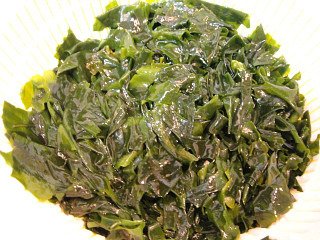 2. 미역은 불린후 팍팍 씻어 여러번 찬물에 헹군뒤 소쿠리에 받쳐 물기를 제거해줍니다...