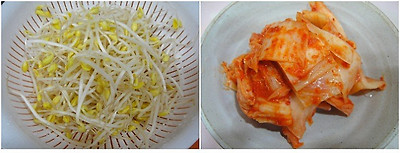 주재료: 콩나물200g. 익은배추김치 150g( 6줄기정도). 다진마늘1/3T. 국간장1T. 다진파2T. 소금1T.