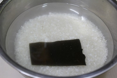 1. 쌀은 씻어 다시마1조각을 넣어 30분 불립니다.