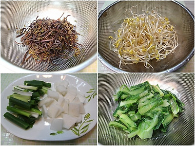 고사리는 삶아서 찬물에 헹궈 먹기 좋게 썰어줍니다.