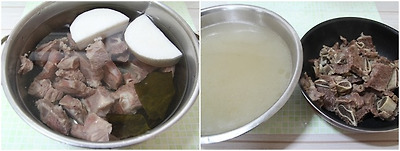 ==> 한번 애벌삶기 한 육수는 모두 버리세요. 애벌삶은후 다시 삶아야 깔끔한 국물이 만들어집니다.