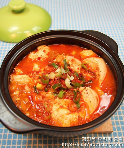 참치1캔(150g짜리). 순두부1봉지. 익은배추김치2장. 멸치다시마육수1컵반정도. 다진파2T.