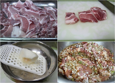 1. 돼지갈비가 좀 이상하죠? 돼지갈비를 먹기 좋게 구입하실때 LA갈비처럼 썰어달라고 정육점에 말씀하시면