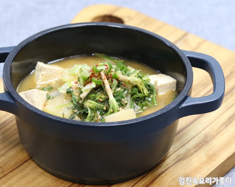 두부와 무를 넣고 끓였는데요 조금만 더 걸죽하게 끓이면 냉이된장찌개라고 불러도 될것 같습니다.