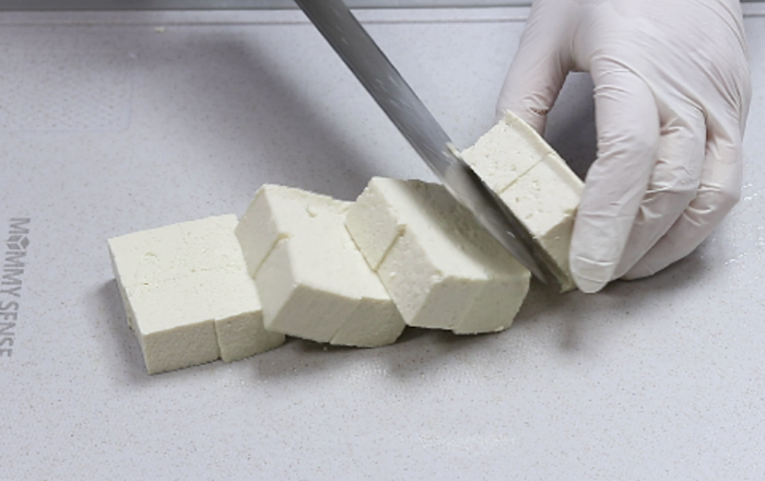 4. 두부반모 깍두기모양으로 썰어줍니다.