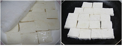 자른 두부를 면보로 살짝 눌러 물기를 제거후 프라이팬에 식용유를 두루고 앞뒤면 중불에서 노릇하게 구워줍니다.