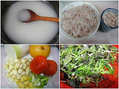 배1개. 홍시2개. 고추가루14컵반. 대파흰부분만 5개. 찹쌀가루2/3컵. 설탕3T.