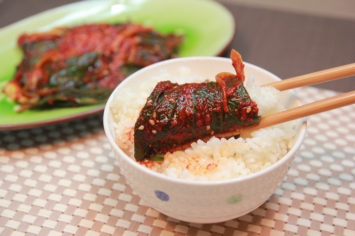 잘 절여진 깻잎에 맛있는 양념을 발라 만든 깻잎장아찌를 밥에 싸서 먹으면...