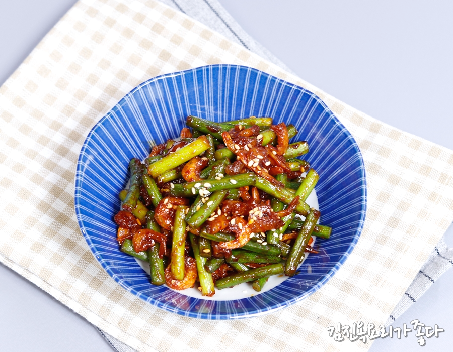 볶은 마늘쫑과 새우는 한쪽에 놓아주시고요~~