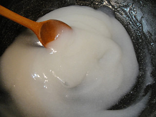 나무주걱으로 저어가면서 중약불에서 3~4분정도 끓여주면 찹쌀풀이 걸죽하게 완성될겁니다.