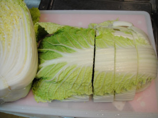 푸른잎을 떼어낸후 밑둥(뿌리부분)을 칼로 살짝 제거후....배추를 반갈라주세요....