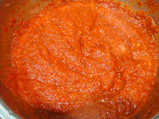여기에 고추가루1컵 + 2T를 넣고 소금1T + 설탕1T를 넣어 잘 섞어 양념장을 만듭니다..