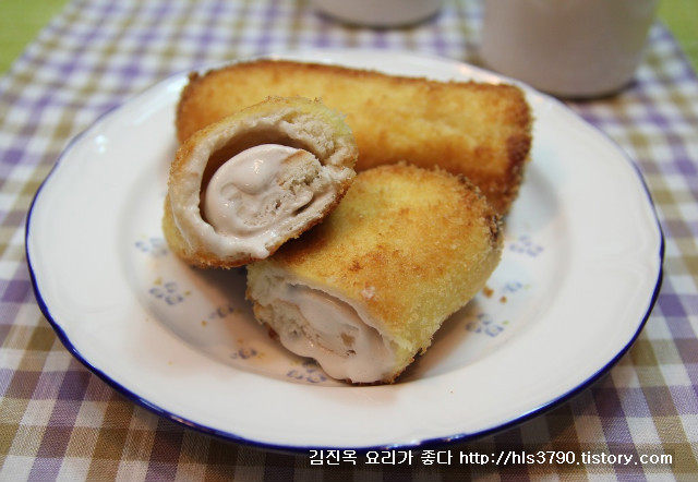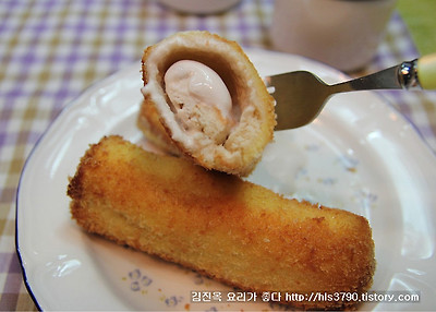 식빵만 튀겨서도 간식으로 먹잖아요.. 식빵속에 아이스크림을 넣으면 식빵은 살짝만 튀겨도 되니까 아이스크림이 잘
