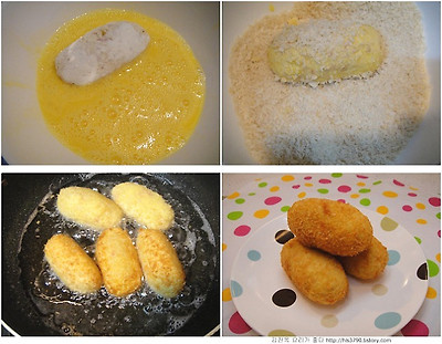 4. 밀가루 묻힌 반죽에 달걀푼물 -> 빵가루를 골고루 묻혀 튀김팬에 기름이 달아 오르면 중약불에서 노릇하게