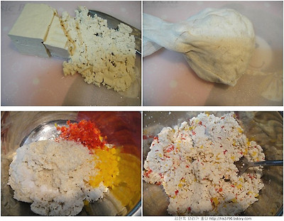 재료: 두부1/2모. 피자치즈(덩어리로 된것을 이용했습니다..) .빨간색파프리카1/2개. 노란색파프리카1/2개.