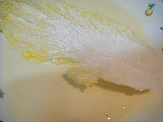 2. 절인배추에 부침가루를 살짝 입혀주세요....그런후... 부침가루5T에 물4T정도 섞은 반죽물을 발라