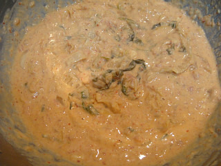 섞어줍니다...( 물을 한번에 넣어주지 마시고요...김치의 양에 따라 반죽의 농도를 맞춰가면서 넣으세요)