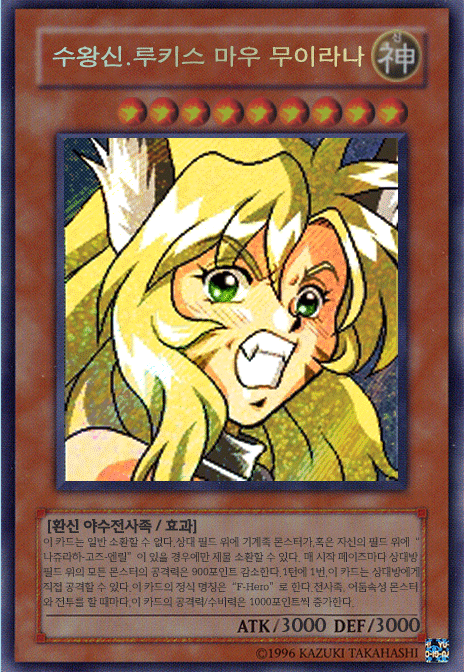 일단 수왕신의 아내이니만치 환신.(공식상에는 환신 야수족만 있지만,환신 야수전사족이니 환신 기계족이니...이런 걸 일단 만들어봄.)