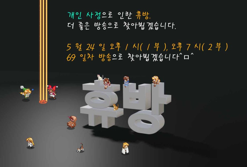 내일 5 월 2 째주 파택온라인 개발 라이브 방송 휴방 안내