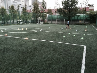 레슨은 90분간 100% 드리블,기술위주의 운동으로서,